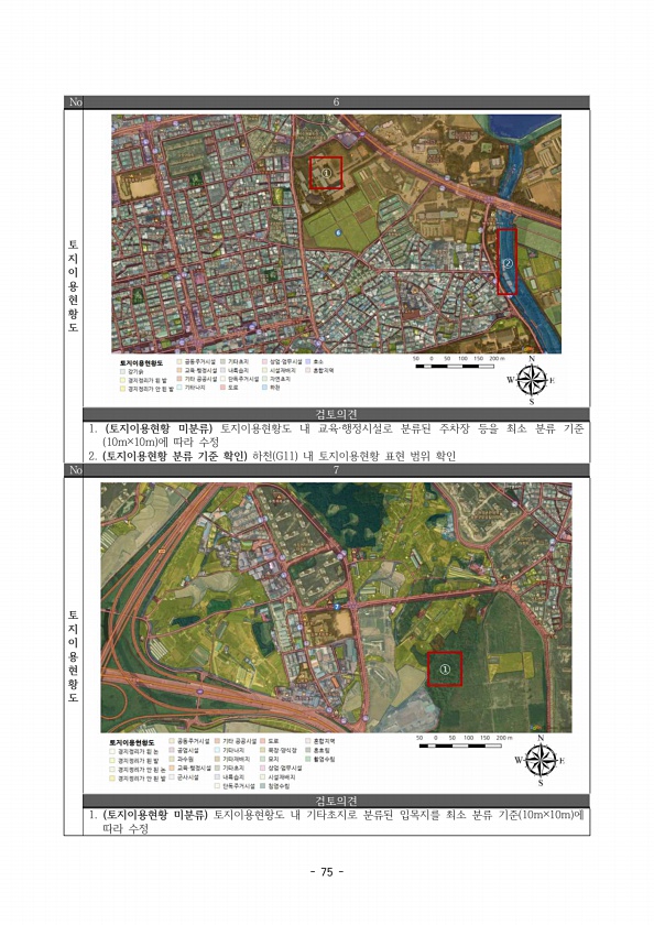 39 식물 88종 만년콩 Ⅰ급 비자란 Ⅰ급 암매 Ⅰ급 생물정보 바로가기 생물정보 바로가기 생물정보 바로가기 부 록5을 최소 분류 기준 10m×10m 에 따라 수정 2. 토지이용현황 분류 기준 확인 하천 G11 내 토지이용현황 표현 범위 확인 No. 7 토지이용현황도 검토의견 1. 토지이용현황 미분류 토지이용현황도 내 기타초지로 분류된 입목지를 최소 분류 기준 10m×10m 에 따라수정