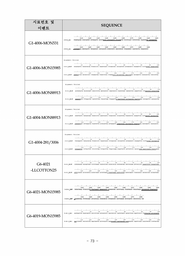 시료번호 및 이벤트 SEQUENCE G1-4006-MON531 G1-4006-MON15985 G1-4006-MON88913 G1-4004-MON88913 G1-4004-281/3006 G6-4021 -LLCOTTON25 G6-4021-MON15985G6-4019-MON15985