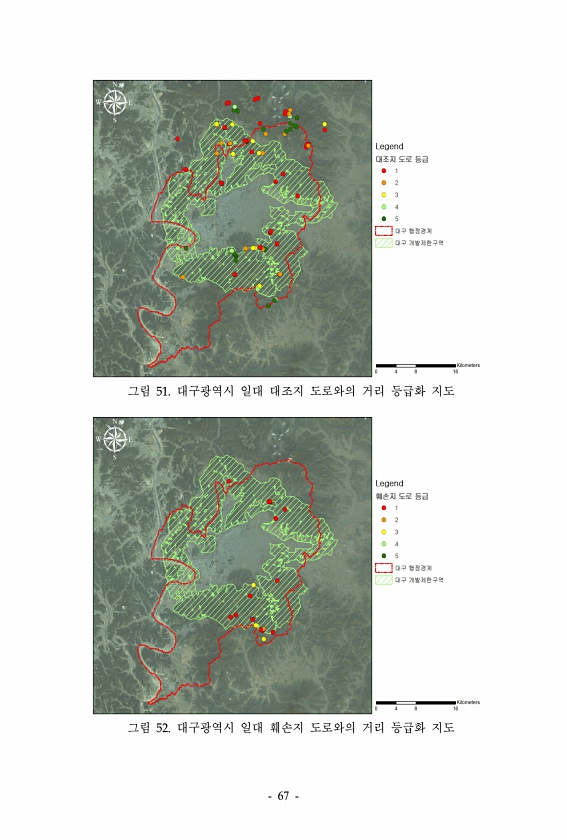 그림 51. 대구광역시 일대 대조지 도로와의 거리 등급화 지도 그림 52. 대구광역시 일대 훼손지 도로와의 거리 등급화 지도 67