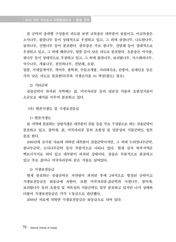 제목 : (2015) 전국 무인도서 자연환경조사 : 통영 권역
