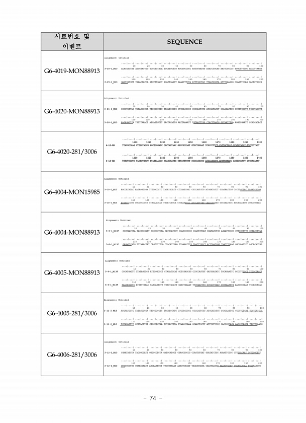 시료번호 및 이벤트 SEQUENCE G6-4019-MON88913 G6-4020-MON88913 G6-4020-281/3006 G6-4004-MON15985 G6-4004-MON88913 G6-4005-MON88913 G6-4005-281/3006G6-4006-281/3006