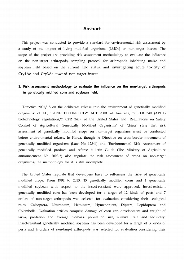 제목 : LMO가 국내 곤충상에 미치는 영향 세부평가 항목 및 평가기준 개발 연구(III)