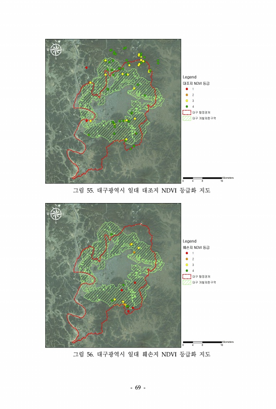 그림 55. 대구광역시 일대 대조지 NDVI 등급화 지도 그림 56. 대구광역시 일대 훼손지 NDVI 등급화 지도 69