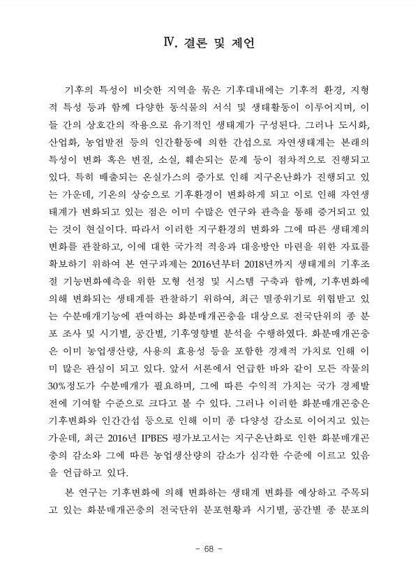 제목 : (2018) 생태계의 주요 조절 기능에 대한 기후변화 영향 연구