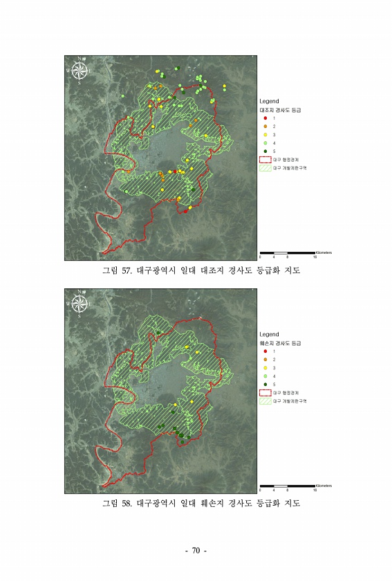 그림 57. 대구광역시 일대 대조지 경사도 등급화 지도 그림 58. 대구광역시 일대 훼손지 경사도 등급화 지도 70