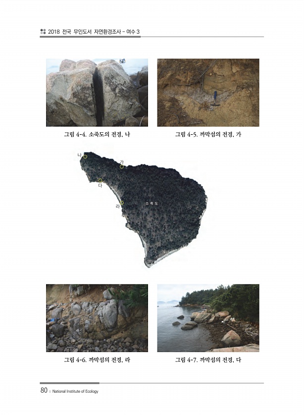 2018 전국 무인도서 자연환경조사 여수 3 80 ? National Institute of Ecology 그림 4-4. 소죽도의 전경, 나 그림 4-5. 까막섬의 전경, 가 그림 4-6. 까막섬의 전경, 라 그림 4-7. 까막섬의 전경,다