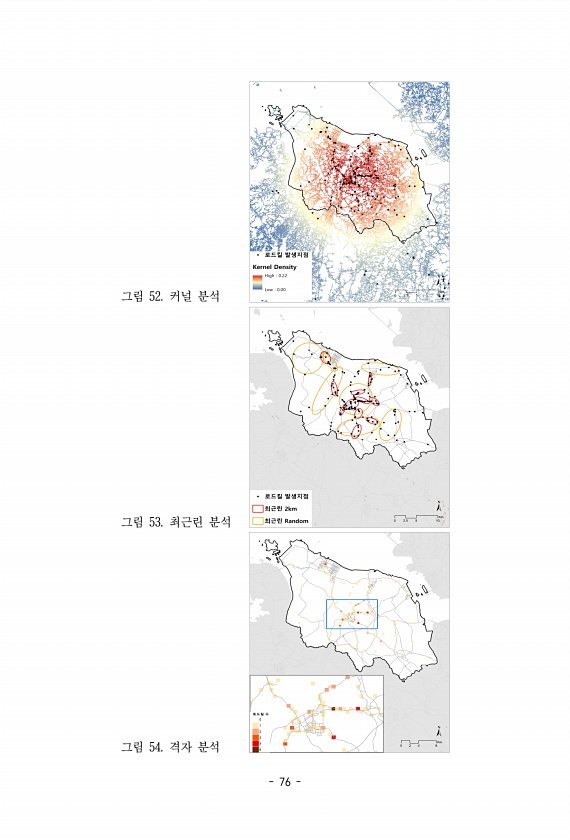 76 그림 52. 커널 분석 그림 53. 최근린 분석 그림 54. 격자분석