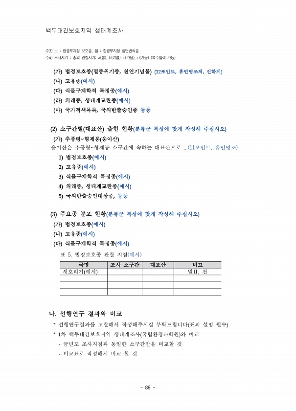 제목 : 백두대간보호지역 생태계 조사 지침서