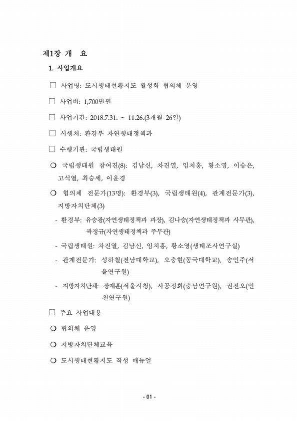 제목 : 도시생태현황지도 활성화 협의체 운영 : 환경부 수탁과제 최종보고서