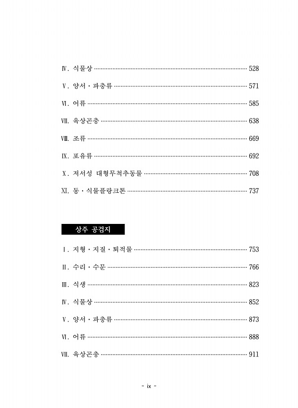 ix Ⅳ. 식물상 ···························································································· 528 Ⅴ. 양서·파충류 ················································································ 571 Ⅵ. 어류 ································································································ 585 Ⅶ. 육상곤충 ···················································································...