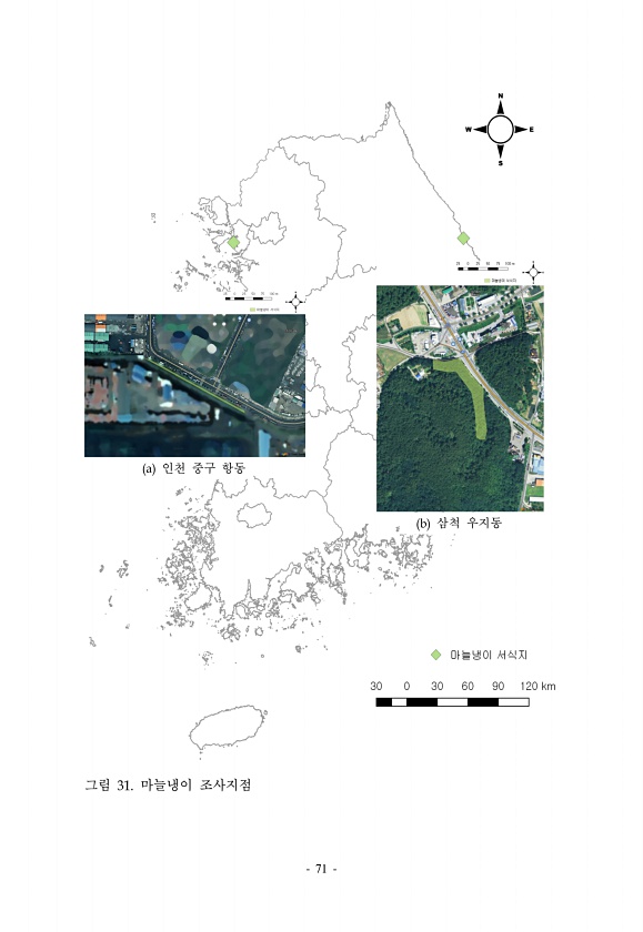 71 a 인천 중구 항동 b 삼척 우지동 그림 31. 마늘냉이조사지점