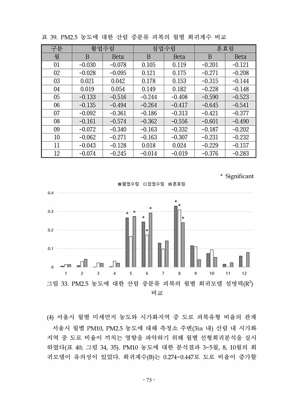 73 구분 활엽수림 침엽수림 혼효림 월 B Beta B Beta B Beta 01 -0.030 -0.078 0.105 0.119 -0.201 -0.121 02 -0.028 -0.095 0.121 0.175 -0.271 -0.208 03 0.021 0.042 0.178 0.153 -0.315 -0.144 04 0.019 0.054 0.149 0.182 -0.228 -0.148 05 -0.133 -0.516 -0.244 -0.408 -0.590 -0.523 06 -0.135 -0.494 -0.264 -0.417 -0.645 -0.541 07 -0.092 -0.361 -0.186 -0.313 -0.421 -0.377 08 -0.161 -0.574 -0.362 -0.556 -0.601 -0.490 09 -0.072...