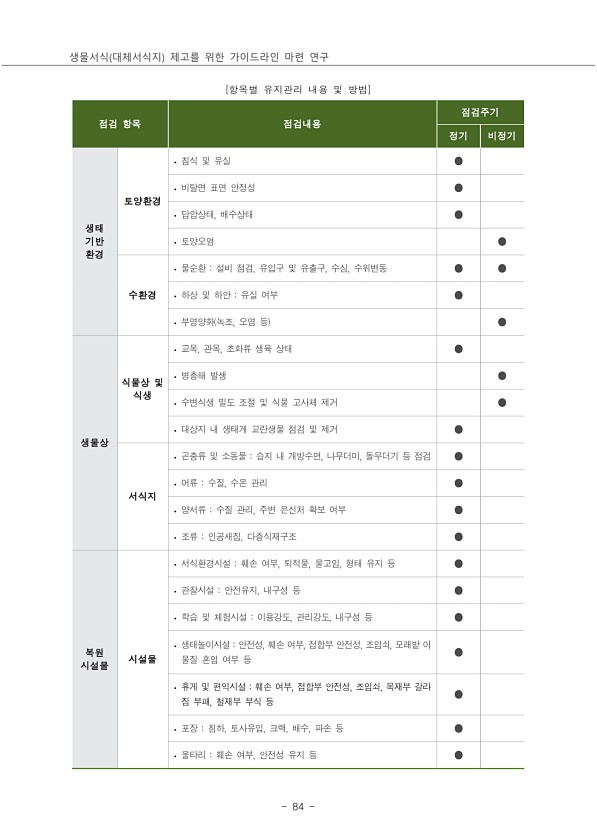 제목 : 생물서식(대체서식지) 제고를 위한 가이드라인 마련 연구