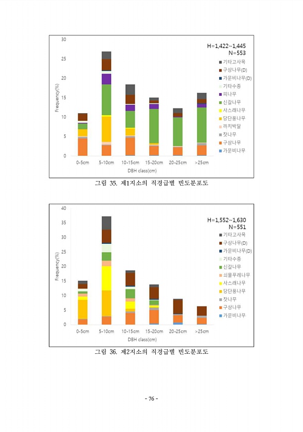 76 그림 35. 제1지소의 직경급별 빈도분포도 그림 36. 제2지소의 직경급별 빈도분포도 76