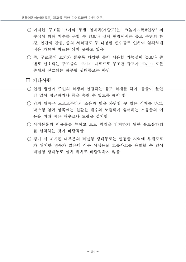 제목 : 서식지 파편화 분석 및 생태통로 기능개선 연구
