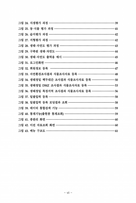 vii 그림 24. 식생평가 과정 ······························································································39 그림 25. 동·식물 평가 과정 ······················································································41 그림 26. 습지평가 과정 ······························································································42 그림 27. 지형평가 과정 ··················································...