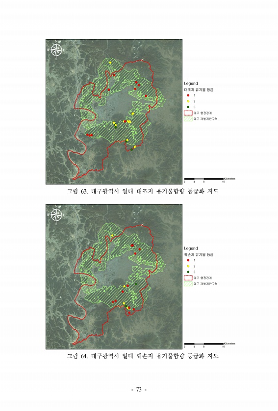 그림 63. 대구광역시 일대 대조지 유기물함량 등급화 지도 그림 64. 대구광역시 일대 훼손지 유기물함량 등급화 지도 73