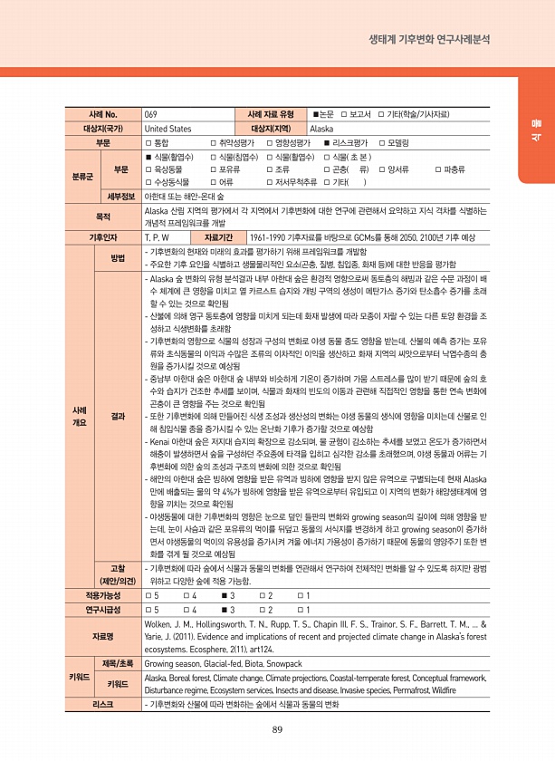 제목 : 생태계 기후변화 영향·취약성·리스크평가 : 연구사례분석