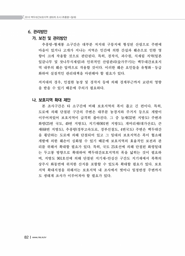 제목 : (2016) 백두대간보호지역 생태계 조사.추풍령~밀재