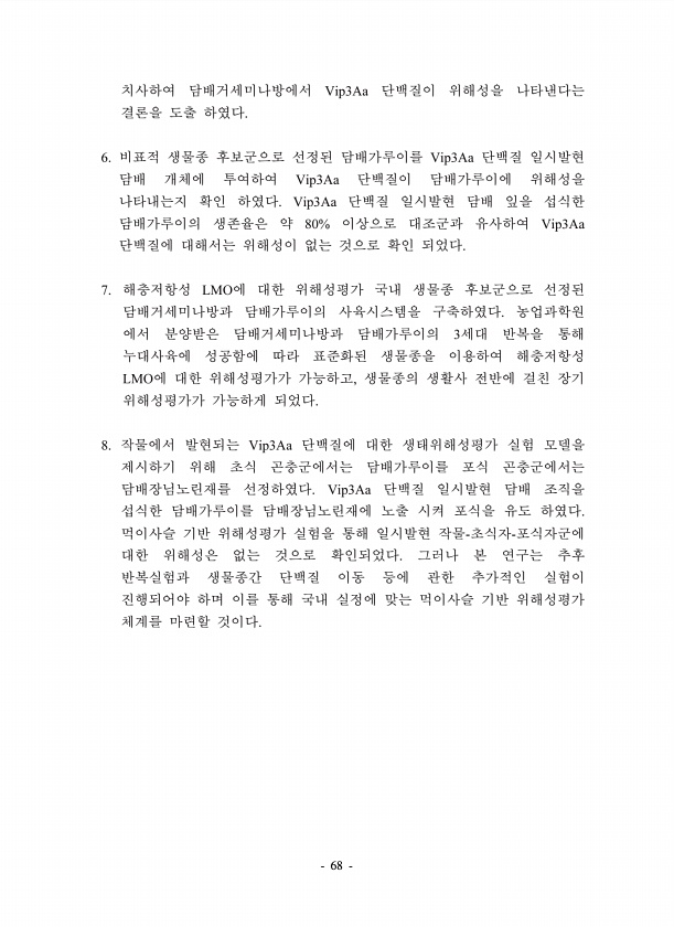 제목 : (2019) 해충저항성 LMO의 환경위해성 연구
