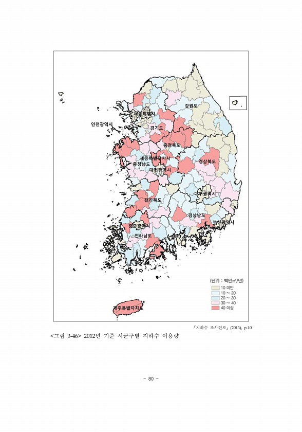 80 『지하수 조사연보』 2013 , p.10 그림 3-46 2012년 기준 시군구별 지하수이용량