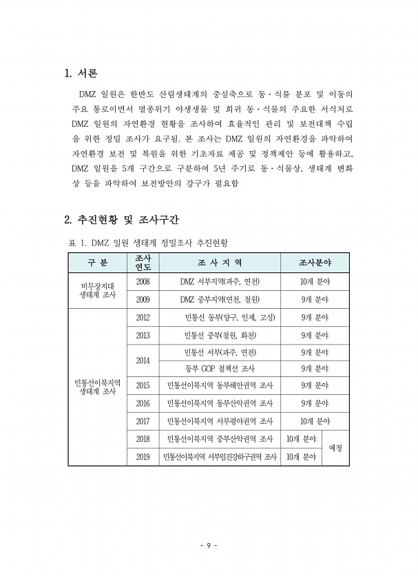 2017 DMZ 일원 생태계 조사 민통선이북지역 서부평야권역 Ⅰ. 총괄