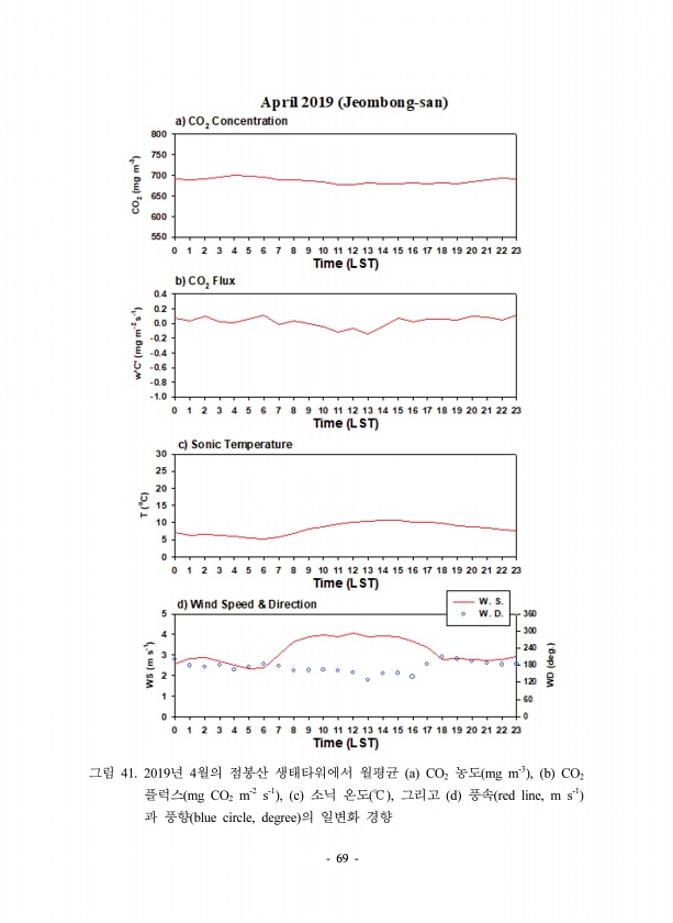 69 41. 2019 4 a CO2 mg m-3 , b CO2 mg CO2 m-2 s-1 , c , d red line, m s-1 blue circle, degree