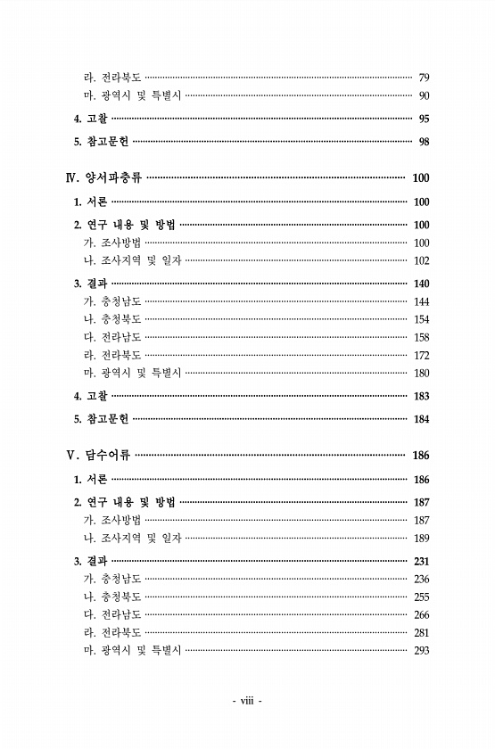 viii 라. 전라북도 ·········································································································· 79 마. 광역시 및 특별시 ·························································································· 90 4. 고찰 ······················································································································· 95 5. 참고문헌 ·································...