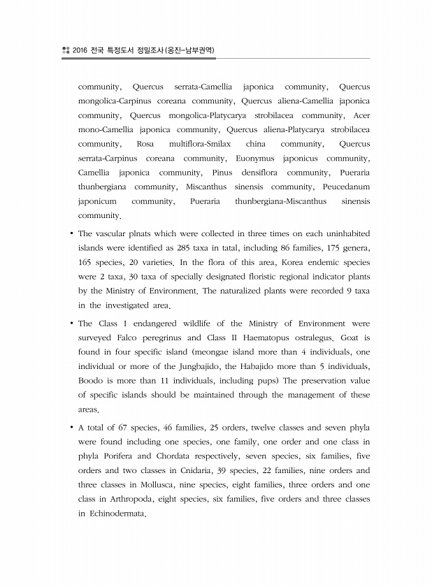 제목 : (2016) 특정도서 정밀조사 : 옹진-남부권역