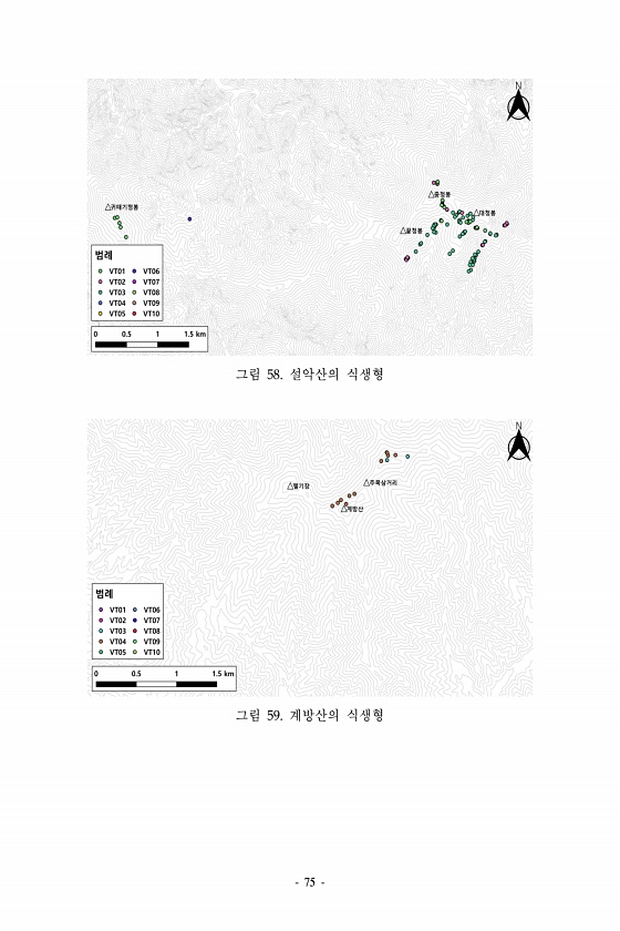 75 그림 58. 설악산의 식생형 그림 59. 계방산의식생형