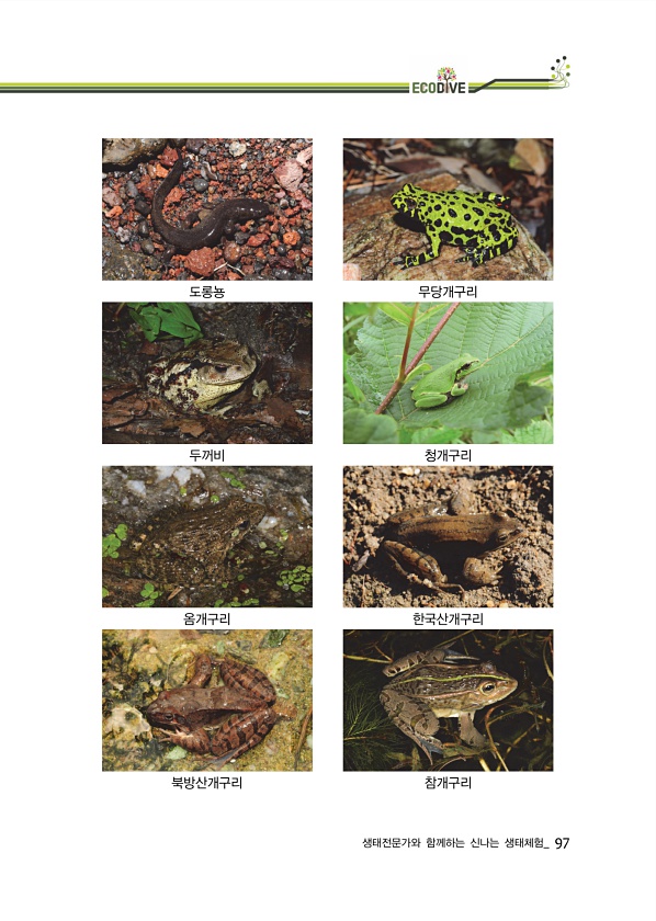 생태전문가와 함께하는 신나는 생태체험_ 97 도롱뇽 무당개구리 두꺼비 청개구리 옴개구리 한국산개구리 북방산개구리참개구리