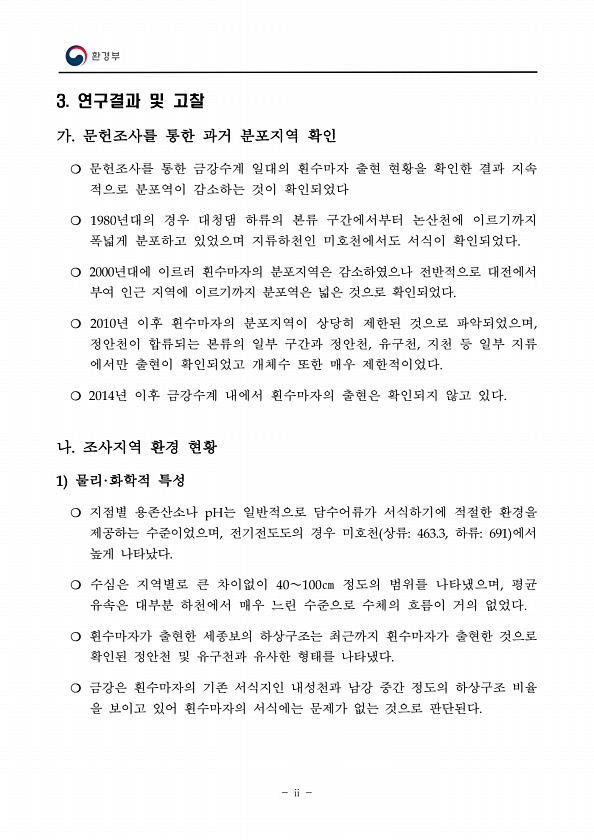 제목 : 금강수계 흰수마자[멸종위기 Ⅰ급] 분포 정밀조사 : 최종보고서
