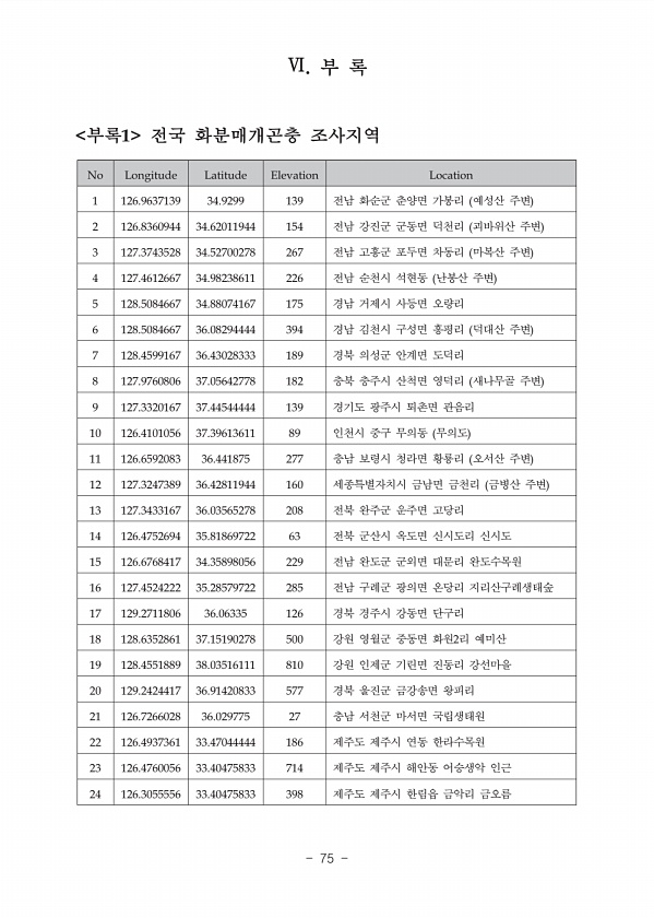 1 No Longitude Latitude Elevation Location 1 126.9637139 34.9299 139 ? 2 126.8360944 34.62011944 154 ? 3 127.3743528 34.52700278 267 ? 4 127.4612667 34.98238611 226 ? ? 5 128.5084667 34.88074167 175 ? 6 128.5084667 36.08294444 394 ? ? 7 128.4599167 36.43028333 189 8 127.9760806 37.05642778 182 ? 9 127.3320167 37.44544444 139 ? 10 126.4101056 37.39613611 89 11 126.6592083 36.441875 277 ? 12 127.324...