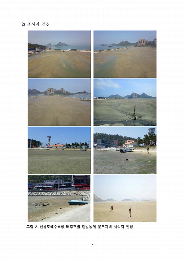 7 2 조사지 전경 그림 2. 선유도해수욕장 배후갯벌 흰발농게 분포지역 서식지전경