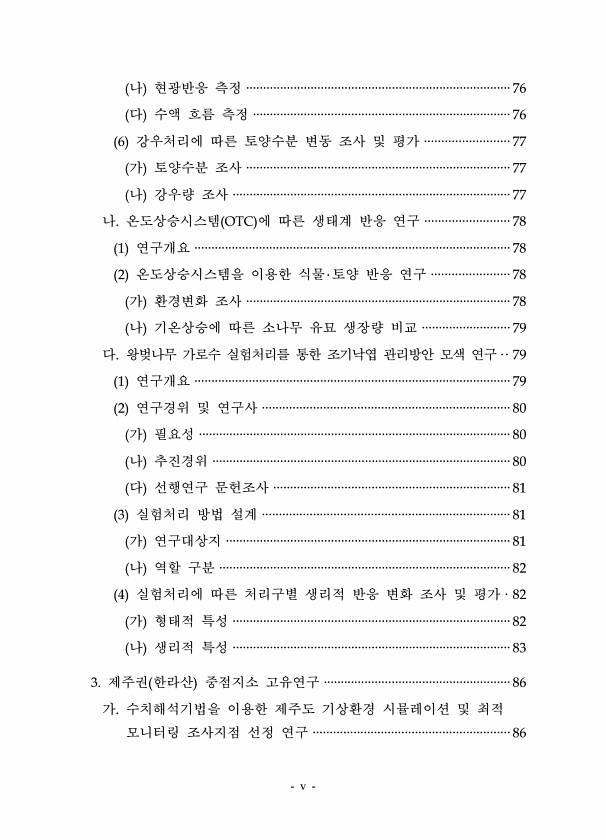 v 나 현광반응 측정 ··············································································76 다 수액 흐름 측정 ············································································76 6 강우처리에 따른 토양수분 변동 조사 및 평가 ·························77 가 토양수분 조사 ··············································································77 나 강우량 조사 ······························································...