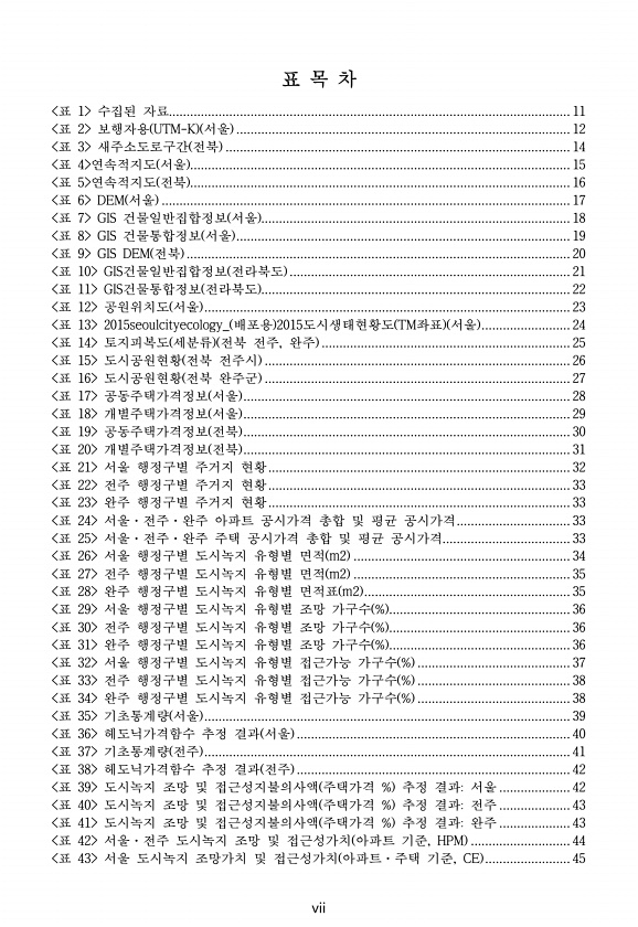 vii 표 목 차 표 1 수집된 자료................................................................................................................. 11 표 2 보행자용 UTM-K 서울 .............................................................................................. 12 표 3 새주소도로구간 전북 ................................................................................................. 14 표 4 연속적지도 서울 .....................