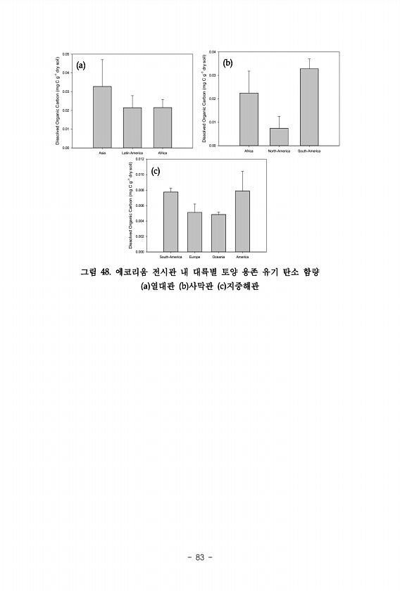 83 Asia Latin America Africa Dissolved Organic Carbon mg C g-1 dry soil 0.00 0.01 0.02 0.03 0.04 0.05 Africa North-America South-America Dissolved Organic Carbon mg C g-1 dry soil 0.00 0.01 0.02 0.03 0.04 South-America Europe Oceania America Dissolved Organic Carbon mg C g-1 dry soil 0.000 0.002 0.004 0.006 0.008 0.0100.012