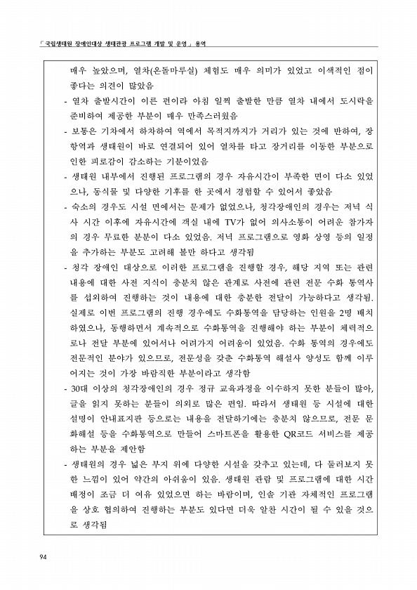제목 : 국립생태원 장애인대상 생태관광 프로그램 개발 및 운영 용역 : 최종보고서