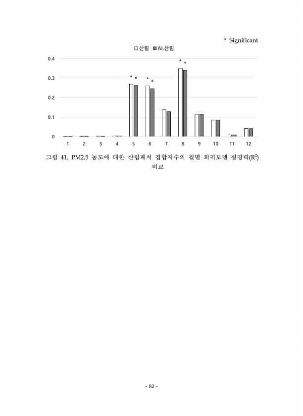 82 그림 농도에 대한 산림패치 집합지수의 월별 회귀모델 설명력 비교 82