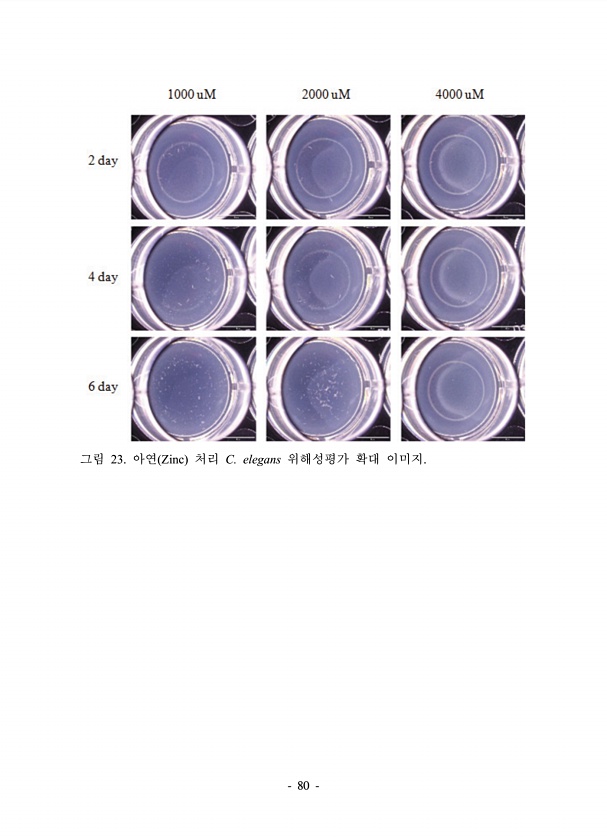 80 그림 23. 아연 Zinc 처리 C. elegans 위해성평가 확대이미지.