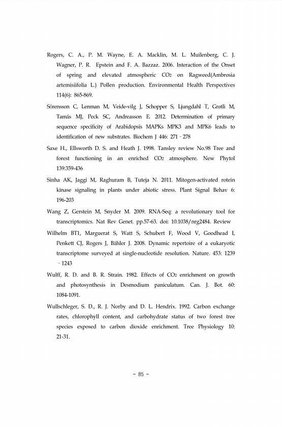 85 Rogers, C. A., P. M. Wayne, E. A. Macklin, M. L. Muilenberg, C. J. Wagner, P. R. Epstein and F. A. Bazzaz. 2006. Interaction of the Onset of spring and elevated atmospheric CO2 on Ragweed Ambrosia artemisiifolia L. Pollen production. Environmental Health Perspectives 114 6 865-869. S?rensson C, Lenman M, Veide-vilg J, Schopper S, Ljungdahl T, Grøtli M, Tam?s MJ, Peck SC, Andreasson E. 2012. Det...