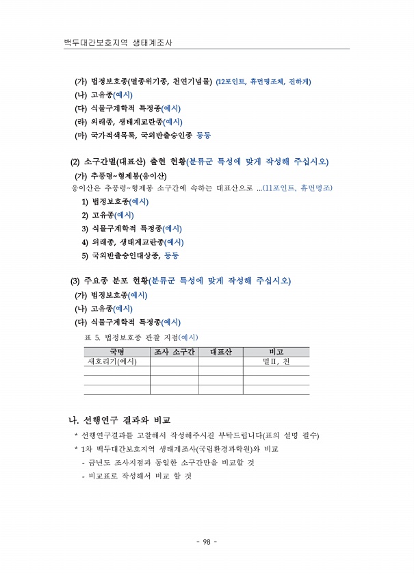 제목 : 백두대간보호지역 생태계 조사 지침서
