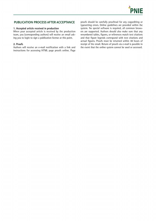 PUBLICATION PROCESS AFTER ACCEPTANCE 1. Accepted article received in production When your accepted article is received by the production team, you corresponding authors will receive an email asking you to login to sign a publication license at this point. 2. Proofs Authors will receive an e-mail notification with a link and instructions for accessing HTML page proofs online. Page proofs should be ...