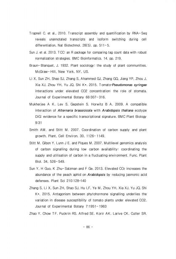86 Trapnell C. et al., 2010. Transcript assembly and quantification by RNA- Seq reveals unannotated transcripts and isoform switching during cell differentiation, Nat Biotechmol. 28 5 pp. 511- 5. Sun J. et al. 2013. TCCan R package for comparing tag count data with robust normalization strategies. BMC Bioinformatics. 14. pp. 219. Braun- Blanquet, J. 1932. Plant sociologythe study of plant communit...