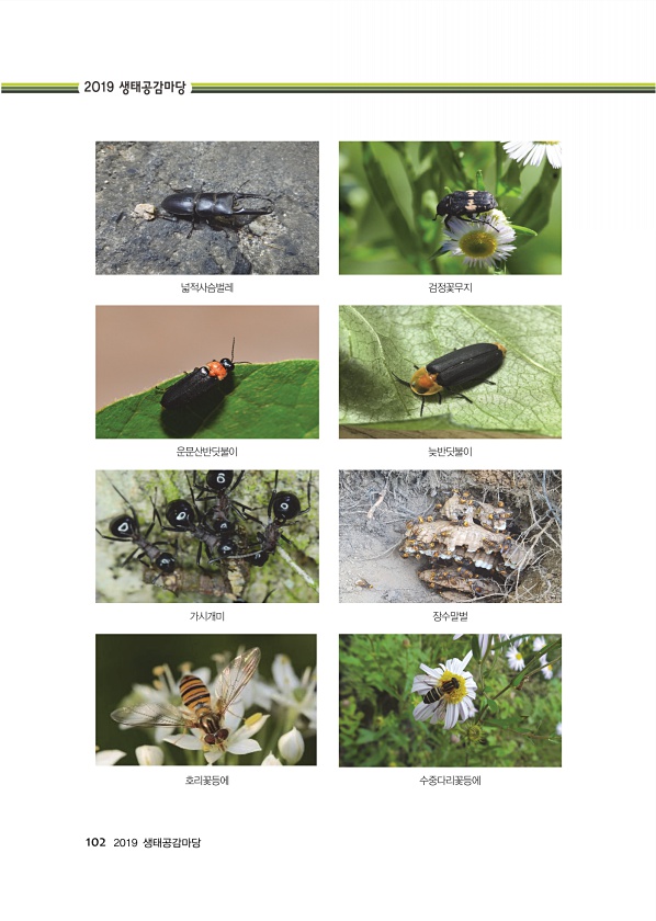 102 2019 생태공감마당 넓적사슴벌레 검정꽃무지 운문산반딧불이 늦반딧불이 가시개미 장수말벌 호리꽃등에수중다리꽃등에