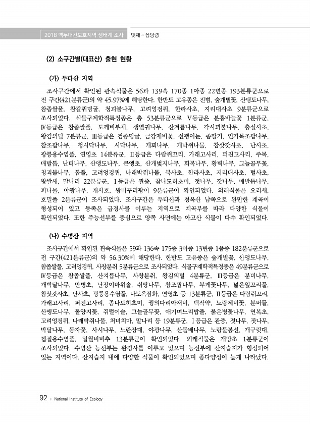 제목 : (2018) 백두대간보호지역 생태계 조사.댓재~삽당령