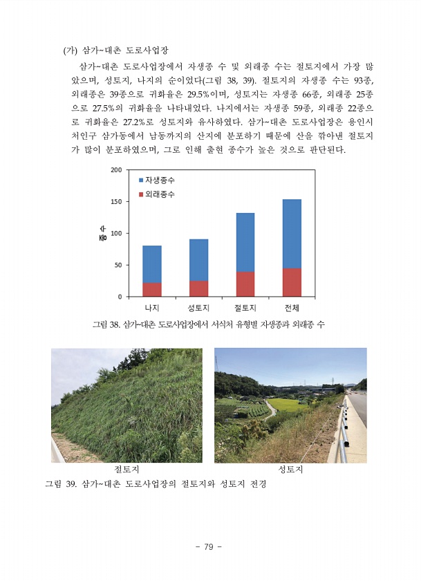 71 다 연평균 고사율 남산 소나무림의 2011년과 2017-2018년의 연평균 고사율을 살펴보면 소나 무는 181개체/ha가 감소하였고 연평균 고사율은 4.8%로 나타났다. 때죽나무 는 288개체/ha가 증가하였고 연평균 고사율은 ?21.3%로 나타났다. 청단풍 나무는 6개체/ha가 감소하였고 연평균 고사율은 0.6%로 나타났다. 벚나무류 는 56개체/ha가 증가하였고 연평균 고사율은 ?7.3%로 나타났다. 신갈나무 는 6개체/ha가 증가하였고 연평균 고사율은 ?3.2%으로 나타났다. 졸참나무 는 44개체가 감소하였고 연평균 고사율은 25.7%로 나타났다. 남산 소나무림 의 전체 수종은 118개체/ha가 증가하였고 연평균 고사율은 ?1.6%으로 나타 났다. Species Alive Dead ND mN Ko...