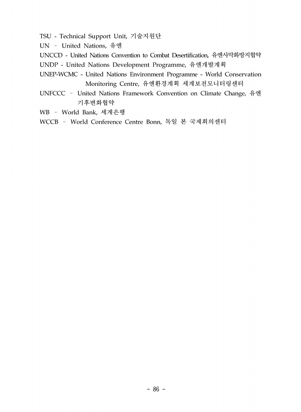 86 기술지원단 유엔 유엔사막화방지협약 유엔개발계획 유엔환경계획 세계보전모니터링센터 유엔 기후변화협약 세계은행 독일 본국제회의센터