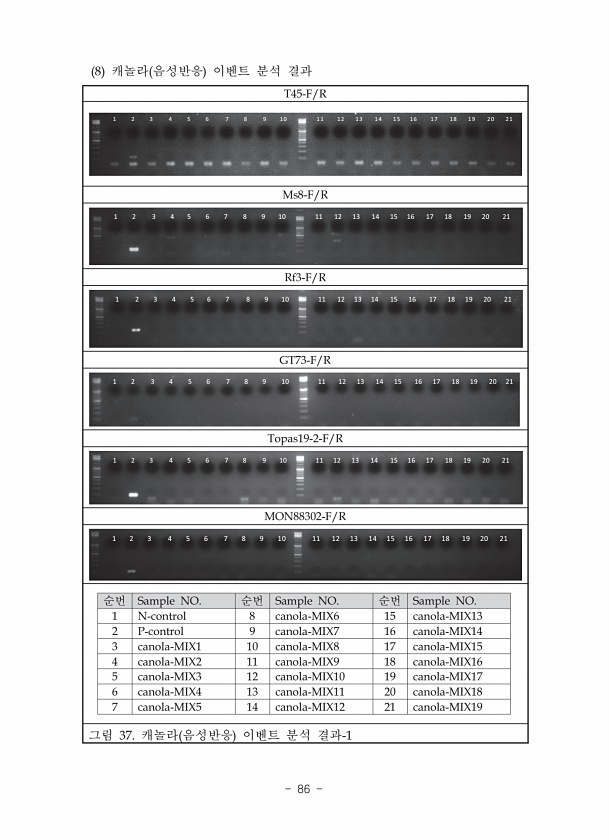 T45-F/R 1 2 3 4 5 6 7 8 9 1 0 1 1 1 2 1 3 1 4 1 5 1 6 1 7 1 8 1 9 2 0 2 1 Ms8-F/R 1 2 3 4 5 6 7 8 9 10 11 12 13 14 15 16 17 18 19 20 21 Rf3-F/R 1 2 3 4 5 6 7 8 9 10 11 12 13 14 15 16 17 18 19 20 21 GT73-F/R 1 2 3 4 5 6 7 8 9 10 11 12 13 14 15 16 17 18 19 20 21 Topas19-2-F/R 1 2 3 4 5 6 7 8 9 10 11 12 13 14 15 16 17 18 19 20 21 MON88302-F/R 1 2 3 4 5 6 7 8 9 10 11 12 13 14 15 16 17 18 19 20 21 순번 S...