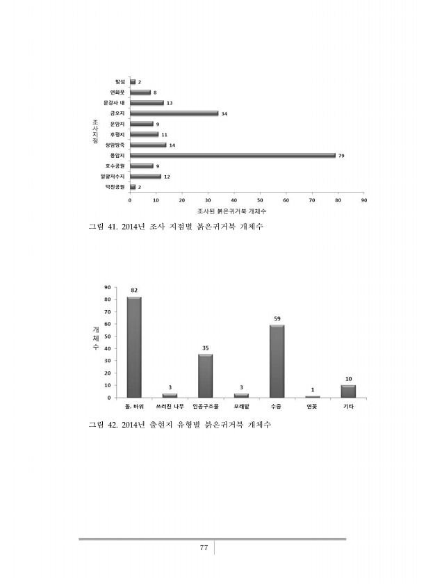 77 그림 41. 2014년 조사 지점별 붉은귀거북 개체수 그림 42. 2014년 출현지 유형별 붉은귀거북개체수